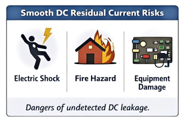 With the proliferation of power-electronics-based systems, circuits increasingly contain rectifiers and DC components. Traditional RCDs (Type AC) cannot reliably detect smooth DC residual currents, as direct current does not alternate and therefore does not generate the necessary AC imbalance signal for detection.