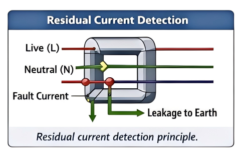 Residual current refers to the imbalance between the currents flowing in the outgoing conductors and the return neutral conductor in an electrical circuit. When these currents do not sum to zero, it indicates that some current is leaking to earth or an unintended path, which poses serious safety hazards such as electric shock or fire. Modern protective devices leverage this principle to rapidly disconnect power under fault conditions.